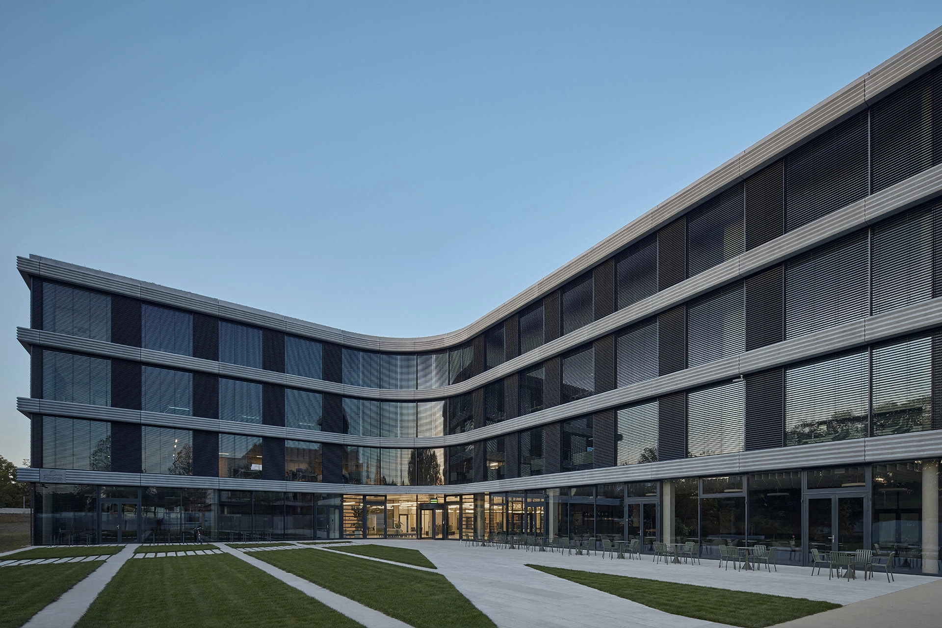deranjați de aspectul dominant al jaluzelelor de pe clădire, așa că se hotărăsc pentru utilizarea plasei de protecție solară exterioară cu un design curat.